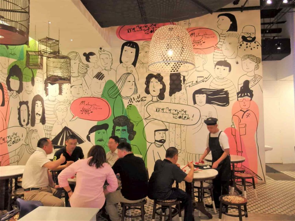 2018年にオープンした高級ホテル「フォーシーズンズ・クアラルンプール」の低層階にあるノンハラルのフードコート。 ペトロナスツインタワーの横でアクセス至便。 レトロモダンなインテリアは写真映えしそう。